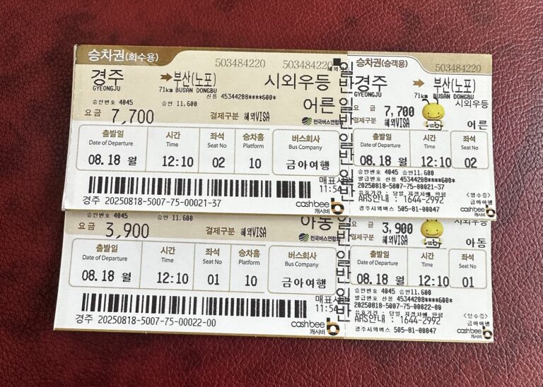 我が家は慶州からの帰りに、あえて高速バス(約1,000円)を利用。
